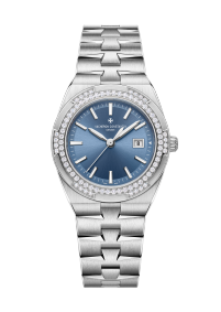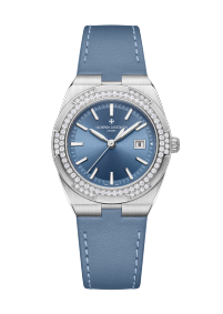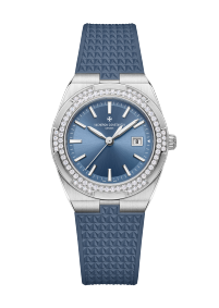 This steel watch combines femininity, delicacy, and sporty allure. The 6-sided bezel, which recalls the Maltese cross, is set with 78 brilliant-cut diamonds. These elegantly illuminate the denim-blue dial, specially designed for the Overseas range. Thanks to its clasp and system of three easily interchangeable straps – steel, leather, and rubber – the watch can be personalized according to the owner’s wishes.