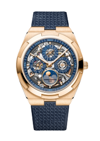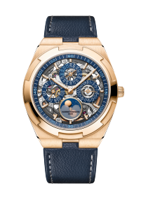 Dial description Sapphire dial with blue velvet-finished minutes track. 18K gold moons with a starry sky. Blue counters. 18K gold applied hour/minute hands and hour-markers highlighted with blue SuperLuminova®.