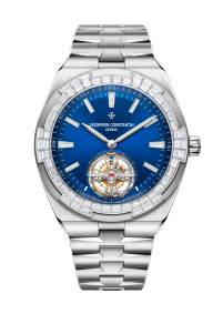 Dial description Sunburst satin-finished lacquered blue dial and velvet-finished minutes track. Small seconds on tourbillon carriage. 18K gold applied hour/minute hands and hour-markers highlighted with blue SuperLuminova®.