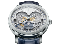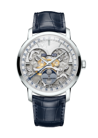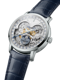 Traditionnelle传袭系列全日历腕表完全采用950铂金精雕细琢而成,以前卫的美学设计,精美的机械构造和创新的显示方式,演绎品牌“矢志不渝,追求卓越”的承诺。这款限量发行370枚的腕表专为庆祝江诗丹顿270周年诞辰而设计,镂雕表盘由机刻雕花的马耳他十字图案润饰而成。自动上链机芯则饰以隐秘的周年纪念标识和特殊纹样。全日历和精密月相显示在彰显现代风格的同时,沿袭了Traditionnelle传袭系列的风格化设计理念,配备阶梯式圆形表壳与表耳、纤细表圈、凹槽底盖、轨道式分钟刻度圈以及太妃式时针和分针。